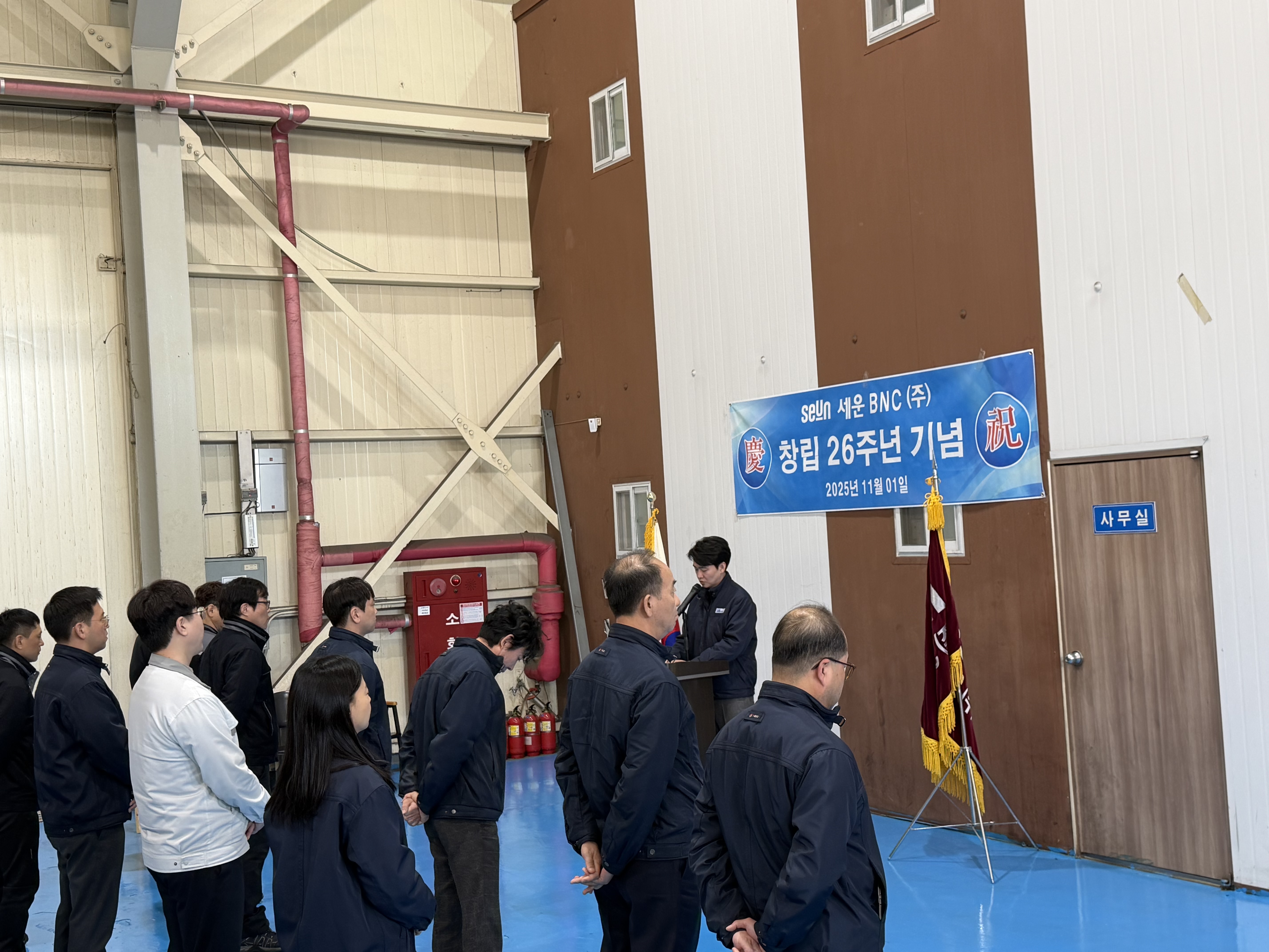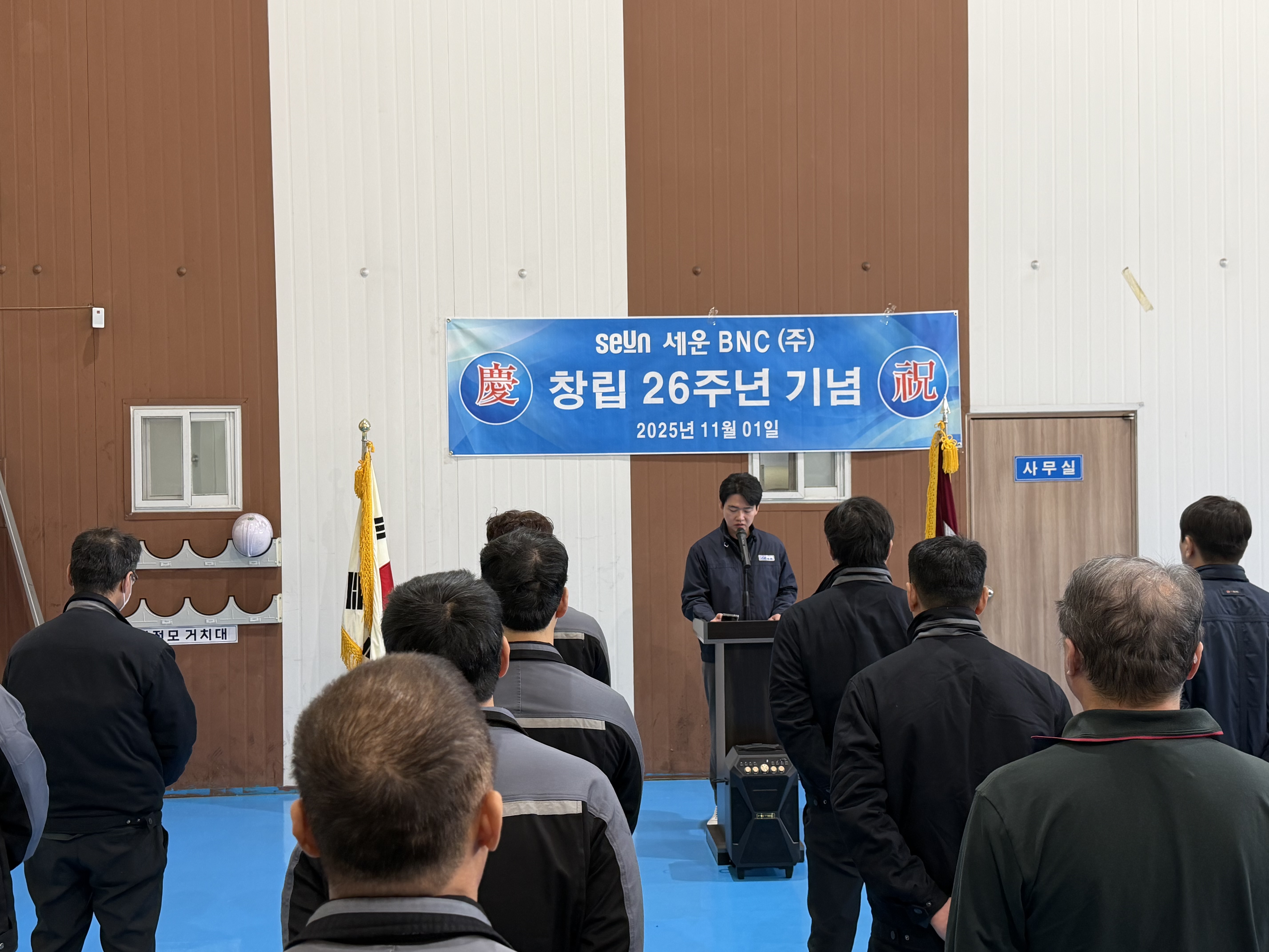 창립 26주년을 맞이하여 기념식을 진행하였습니다. 꾸준히 성장하며 고객사 분들과 소통하는 세운BNC가 되겠습니다.